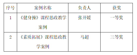2023年12月1日bevictor伟德官网課程思政優秀教學案例評選結果揭曉,bevictor伟德官网休閑體育專業教師張開媛老師榮獲一等獎,馬超老師榮獲三等獎。